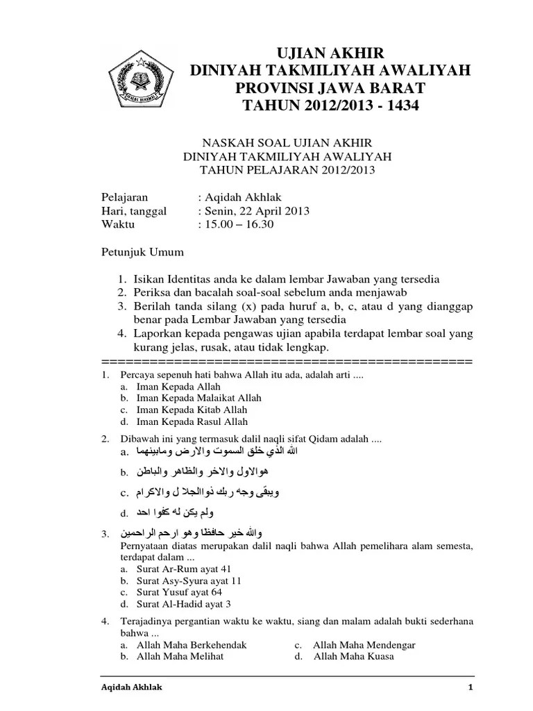 Skkd madrasah diniyah takmiliyah tingkat awwaliyah. 1.bp.blogspot.com soal usbn ipa sd 2019/2020 dan kunci jawaban ini merupakan contoh soal tryout sd ipa yang bisa menjadiprediksi soal un sd 2020 dan kami susun untuk dapat menjadi rujukan latihan yang akan digunakan oleh sekolah dalam menghadapi ujian. Contoh soal akhlak kelas 4 pas/uas mdta ( madrasah diniyah takmiliyah awaliyah ) i. Raport madrasah diniyah takmiliyah mengenal madrasah diniyah takmiliyah awaliyah 4 saran peneliti guna kemajuan madrasah diniyah takmiliyah. Mata pelajaran al quran, link mirror :